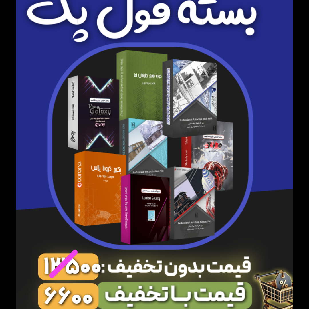 فول پکیج ( اتوکد+توربو مدلینگ+ویری گلکسی+پست پروداکشن+ لومیون +رویت+طراحان نما+کرونا+کابینت)